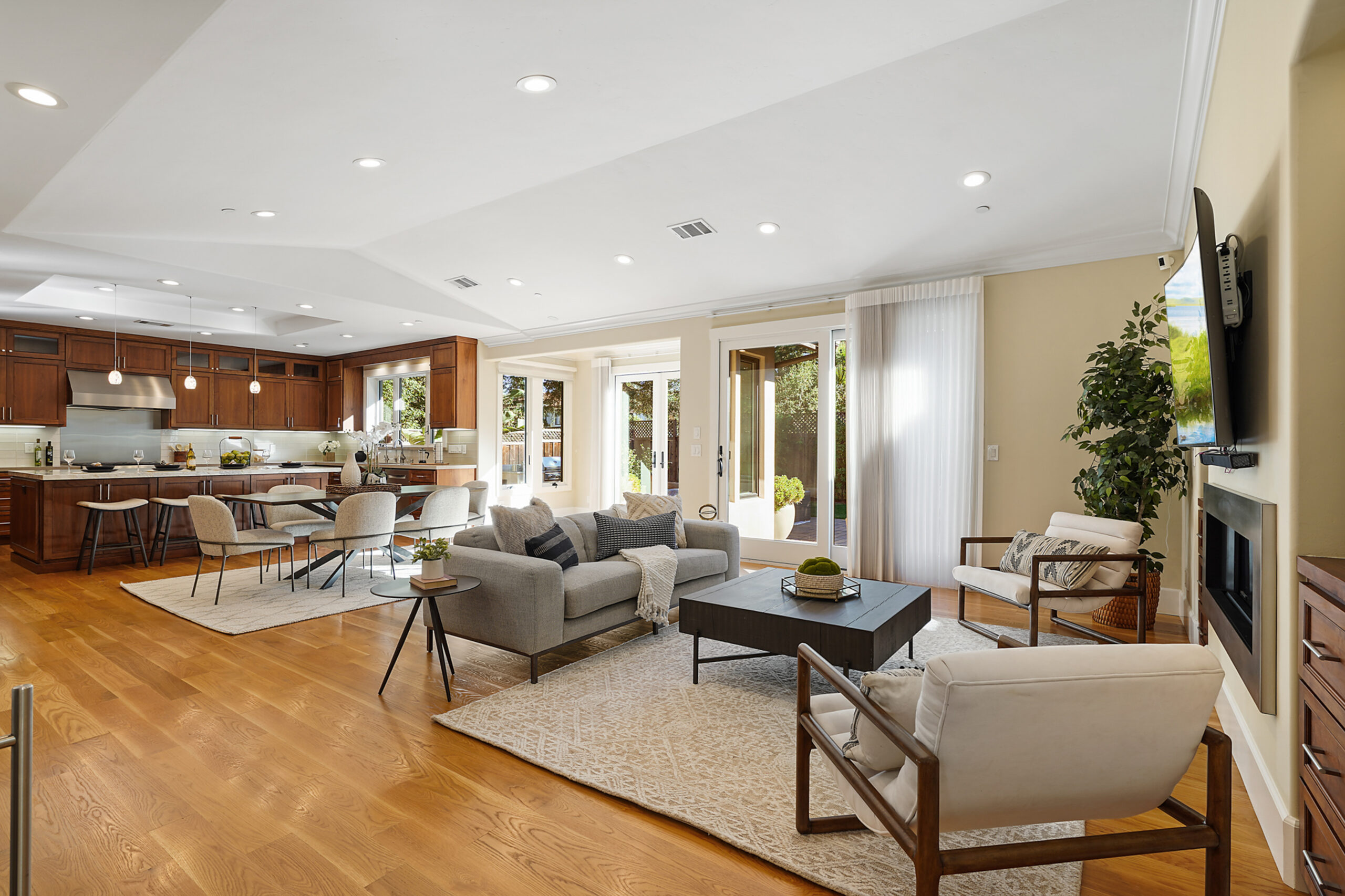 Located on a quiet cul-de-sac in Central Los Altos, this newly constructed home (2015) is a blend of Tuscan design and elegant contemporary architecture. Whether seeking festivity or function, there’s no better home to fit your needs. Experience soaring ceilings in this open concept great room that fuses kitchen, family, dining, and outdoor patio – where meticulous landscaping is surrounded by mature greenery for utmost privacy and relaxation. The chef’s kitchen features a gorgeous stone island and rich, custom walnut cabinetry, complemented by sophisticated stainless steel appliances. Completely private, the rear set master suite has an enviable walk-in closet and a master bathroom that was crafted with impeccable attention to detail. Two bedrooms and a private guest suite complete this 4 bedroom home, and sets a high bar for the comfort. We invite you to enjoy the friendly camaraderie among neighbors in a community with renown Los Altos schools, parks, and convenient commuter routes.