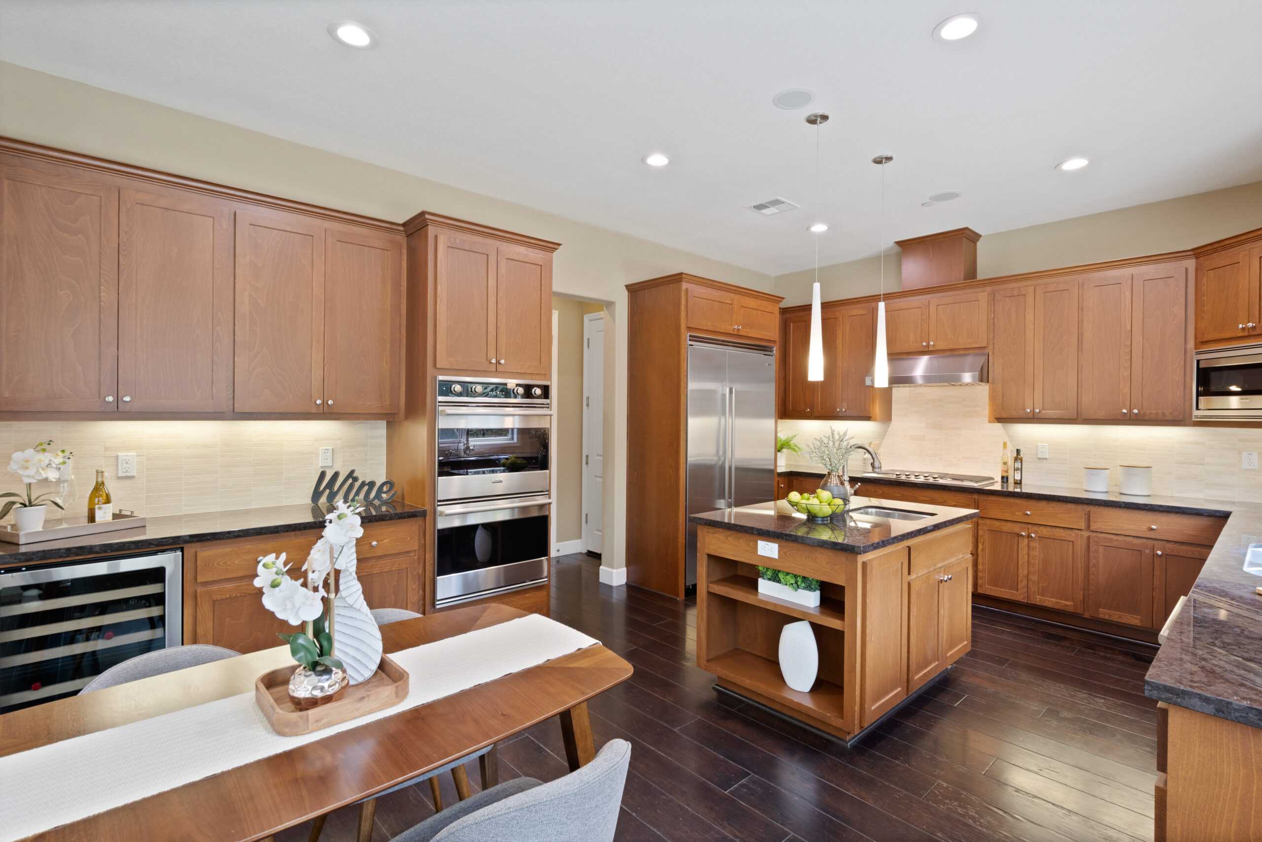 - Chef inspired kitchen is equipped with state-of-the-art appliances, custom cabinetry, and a large center island