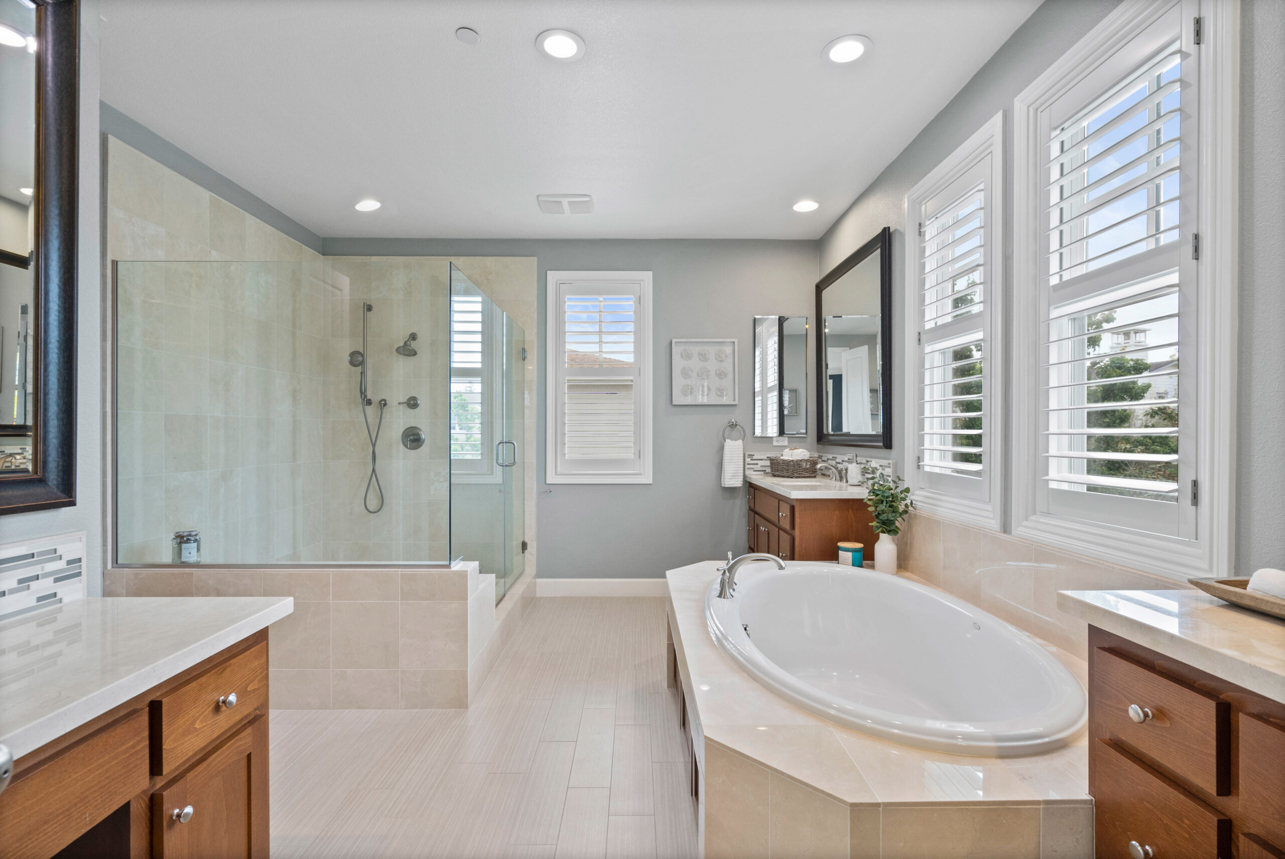 - Spacious master suite is a private oasis with a spa-like ensuite bathroom and a custom walk-in closet