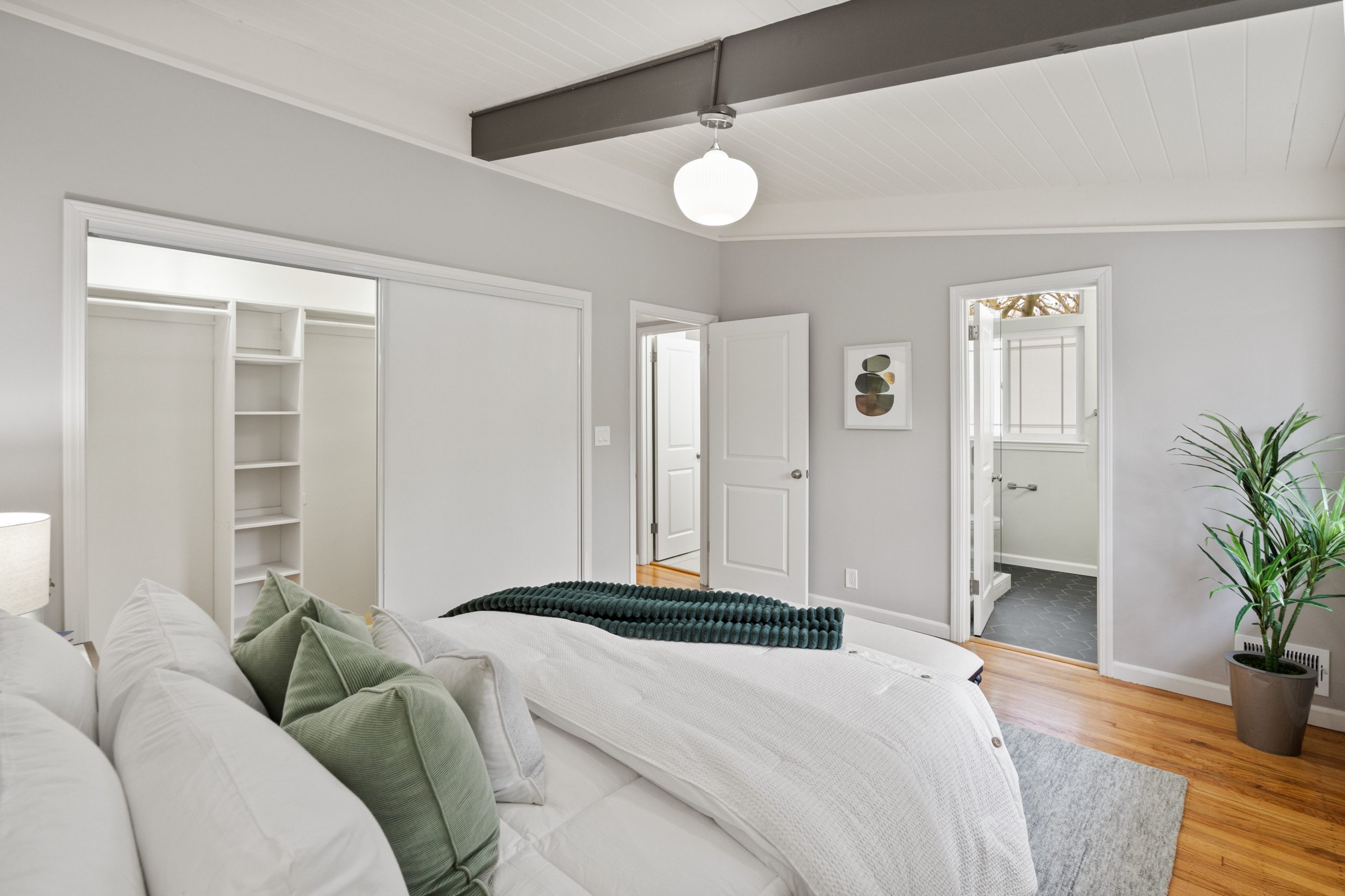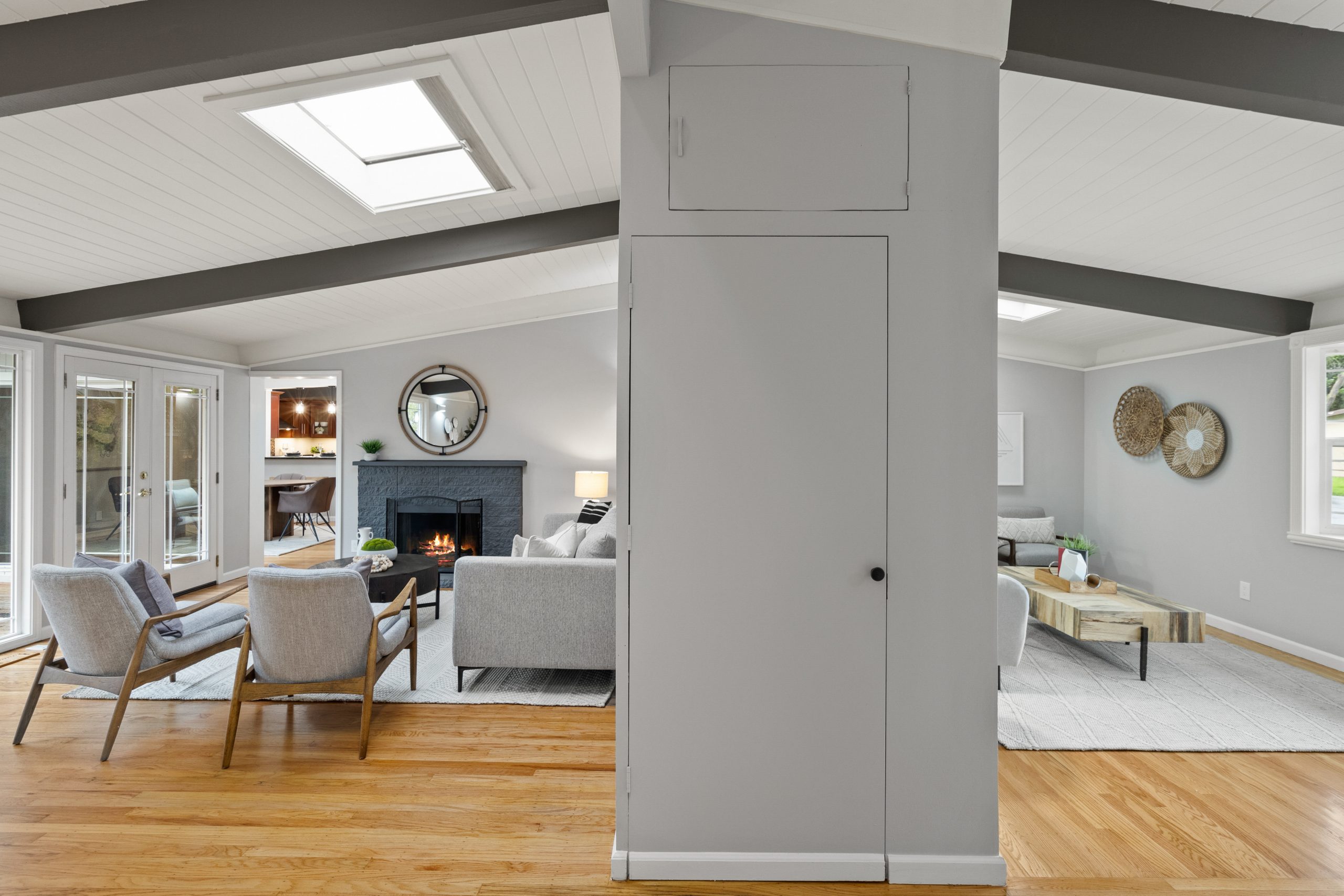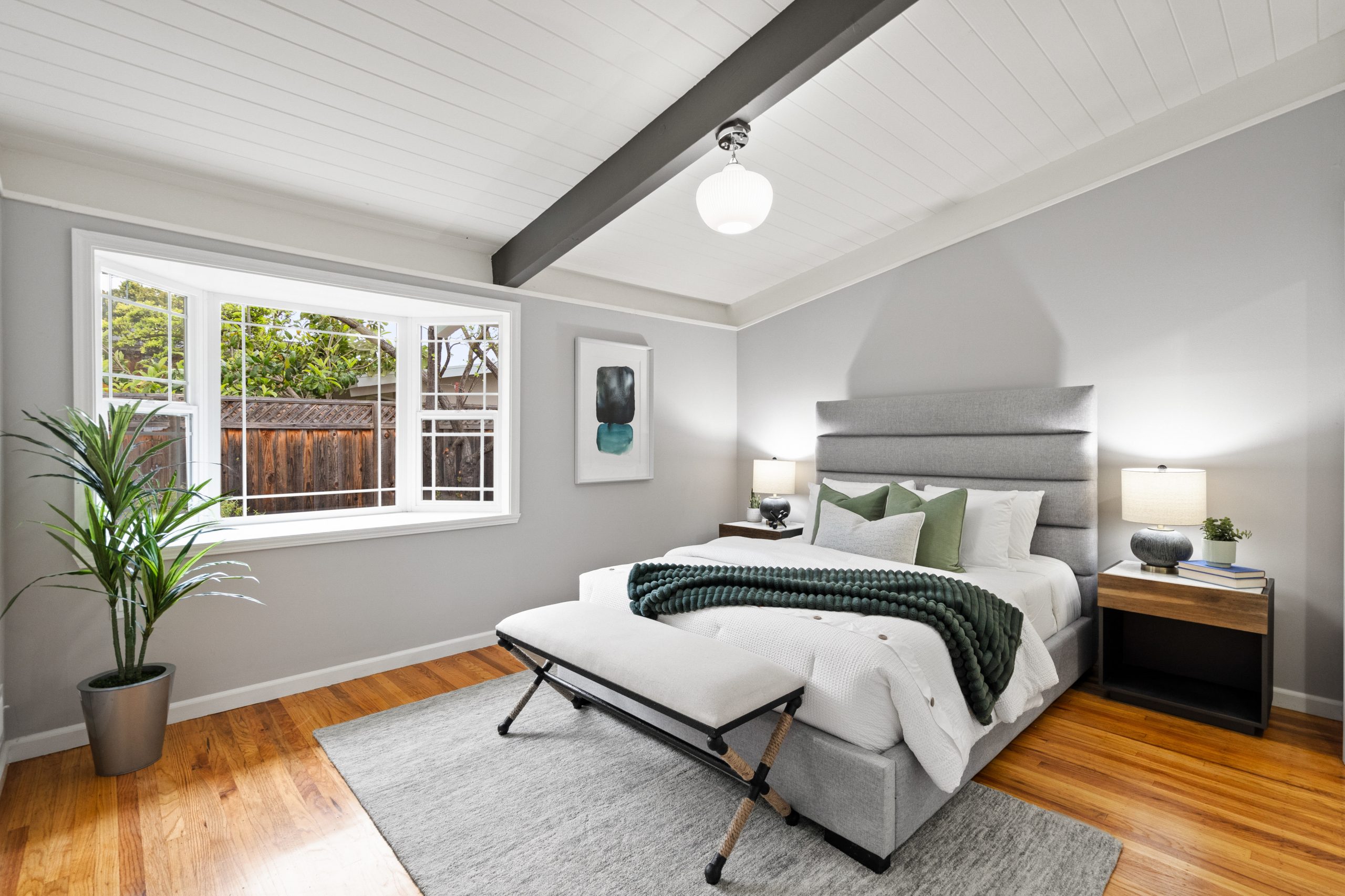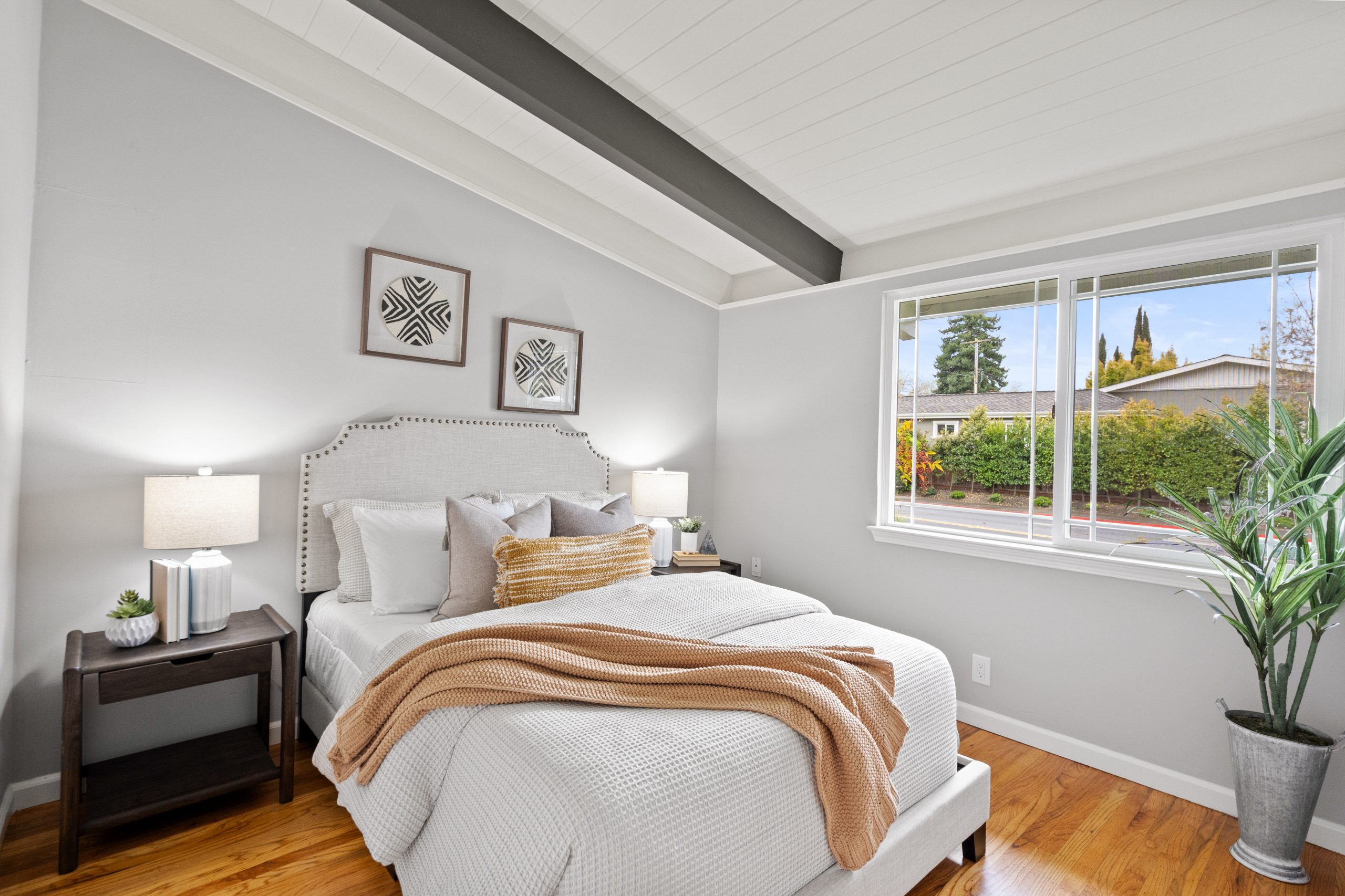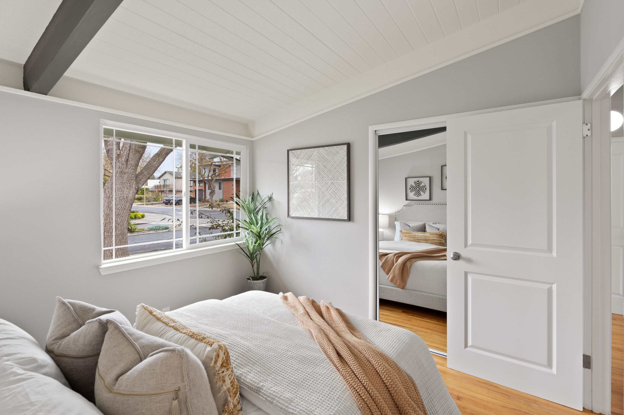 Welcome to this exceptional Brown & Kaufman home, exuding the timeless charm of mid-century modern architecture. Set in highly desirable Midtown Palo Alto, this thoughtfully designed home offers a serene setting with a layout that maximizes space and functionality. This 3-bedroom, 2.5 bathroom home boasts beautiful hardwood floors and exposed beam ceilings throughout the home creating an elegant, bright ambience.  A thoughtfully crafted floor plan effortlessly connects the living room, family room, dining area, and kitchen, creating an ideal space for both everyday living and entertaining. Located just moments from parks, entertainment, shopping, and commute routes, this home offers unparalleled convenience for the modern lifestyle.