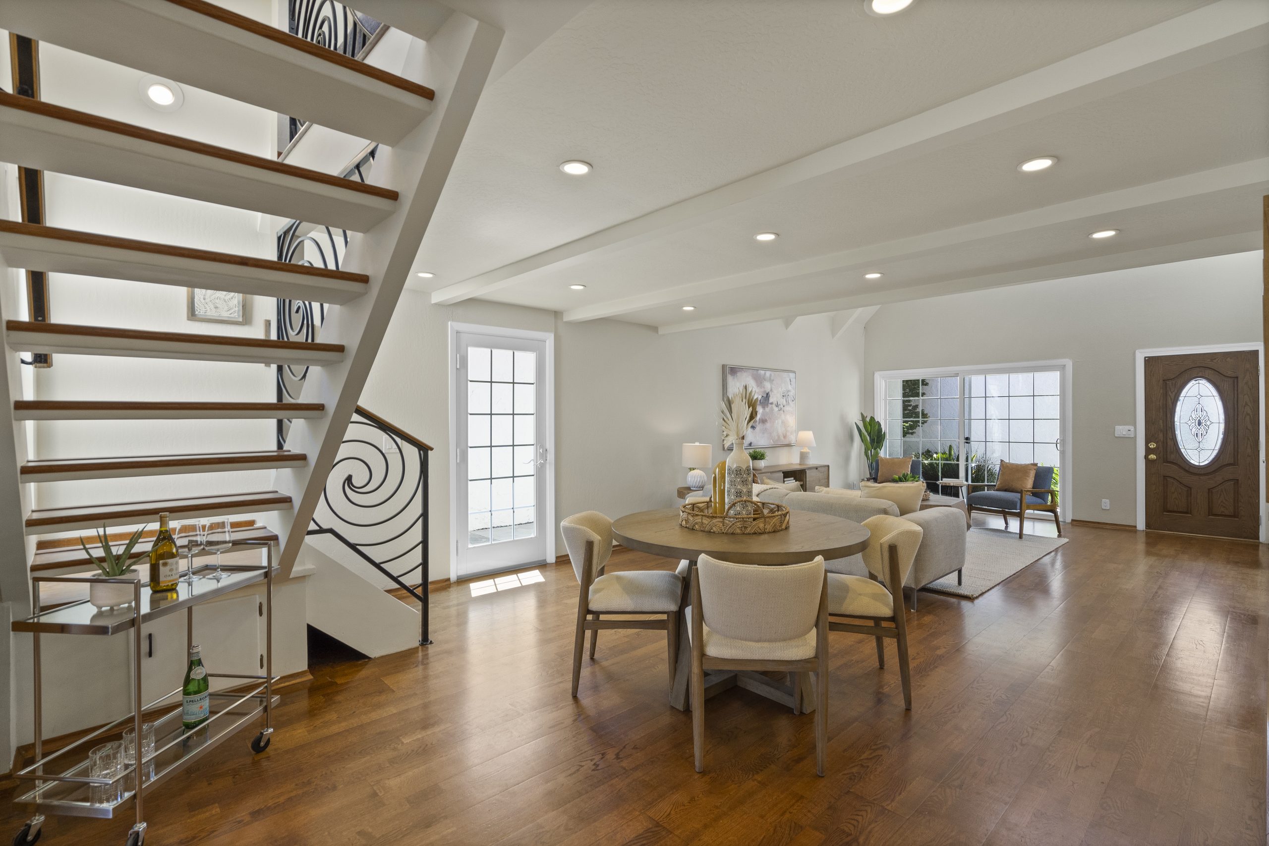 - Light-filled interior with an open-concept floor plan enhances the sense of space and ensures seamless connectivity between the living, dining, and kitchen areas.