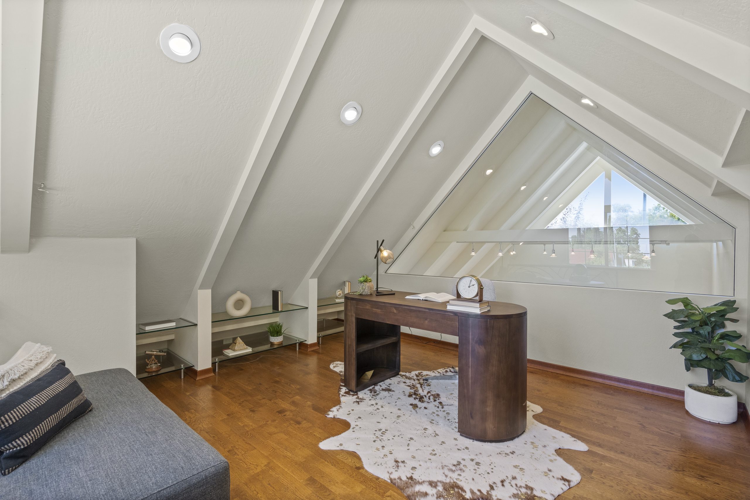 - Awe-inspiring double height A-frame ceiling creates a captivating and spacious atmosphere