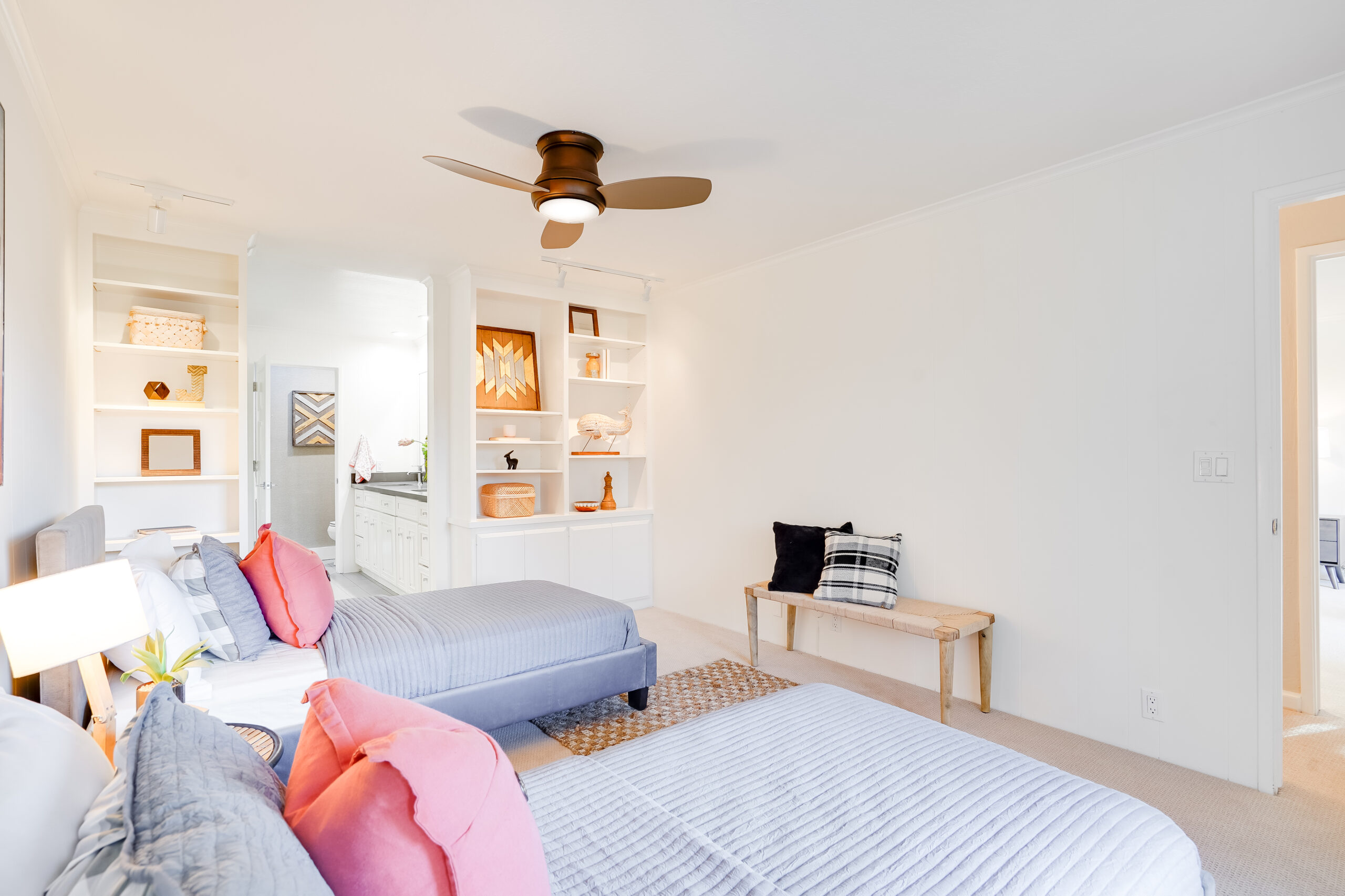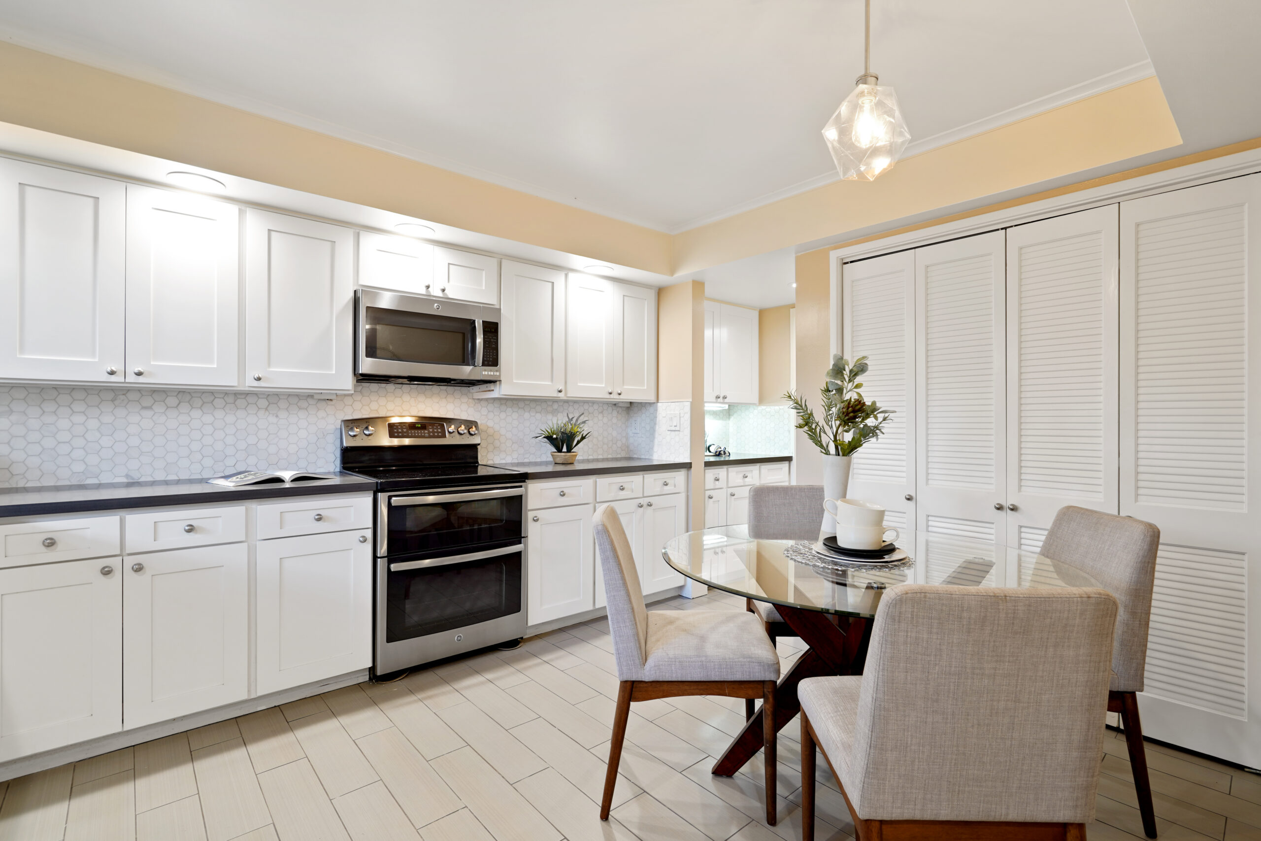 This stunning 2 bedroom luxury townhome boasts a contemporary and expansive floor plan in the private and tree lined community of Los Altos Square. Upon entering, you are greeted by a spacious and comfortable gathering space, abundant with natural light flowing from the dual sliding doors that lead to a private patio that wraps around the front and sides of this corner unit townhome. Soothing hardwood floors extend throughout the main level through to the dining room. The gourmet chef’s kitchen that marries form and function with elegant quartz countertops, gorgeous tile backsplash, and stainless steel appliances. Upstairs are 2 large suited bedrooms with dual vanity, generous mirrored closets, that opens to a private balcony. Spacious 2-car detached garage located steps away from the home. Well maintained HOA with 3 pools and clubhouse.