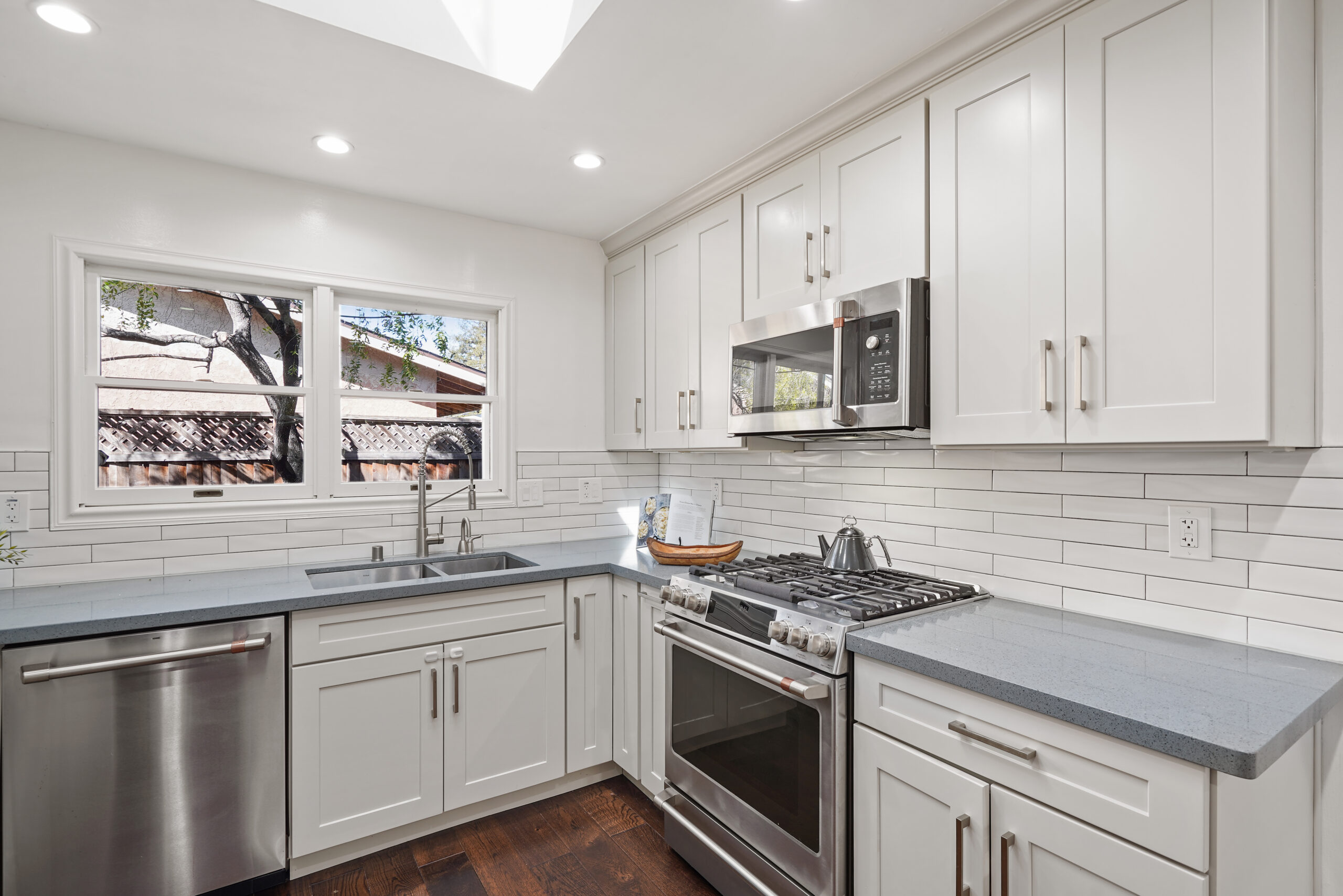 A spectacular backyard highlights this inviting and newly remodeled home set on an expansive 7,000+ sqft rectangular lot – one of the largest lots in the entire neighborhood – where there are no limitations to designing your dream home and recreational yard. Completely remodeled by the owners in 2020 (with permits), this home features rich hardwood floors that extend throughout the great room to the chic and contemporary kitchen, which boasts new cabinets, stainless steel appliances, and designer countertops and backsplash, enhanced by the skylight above.