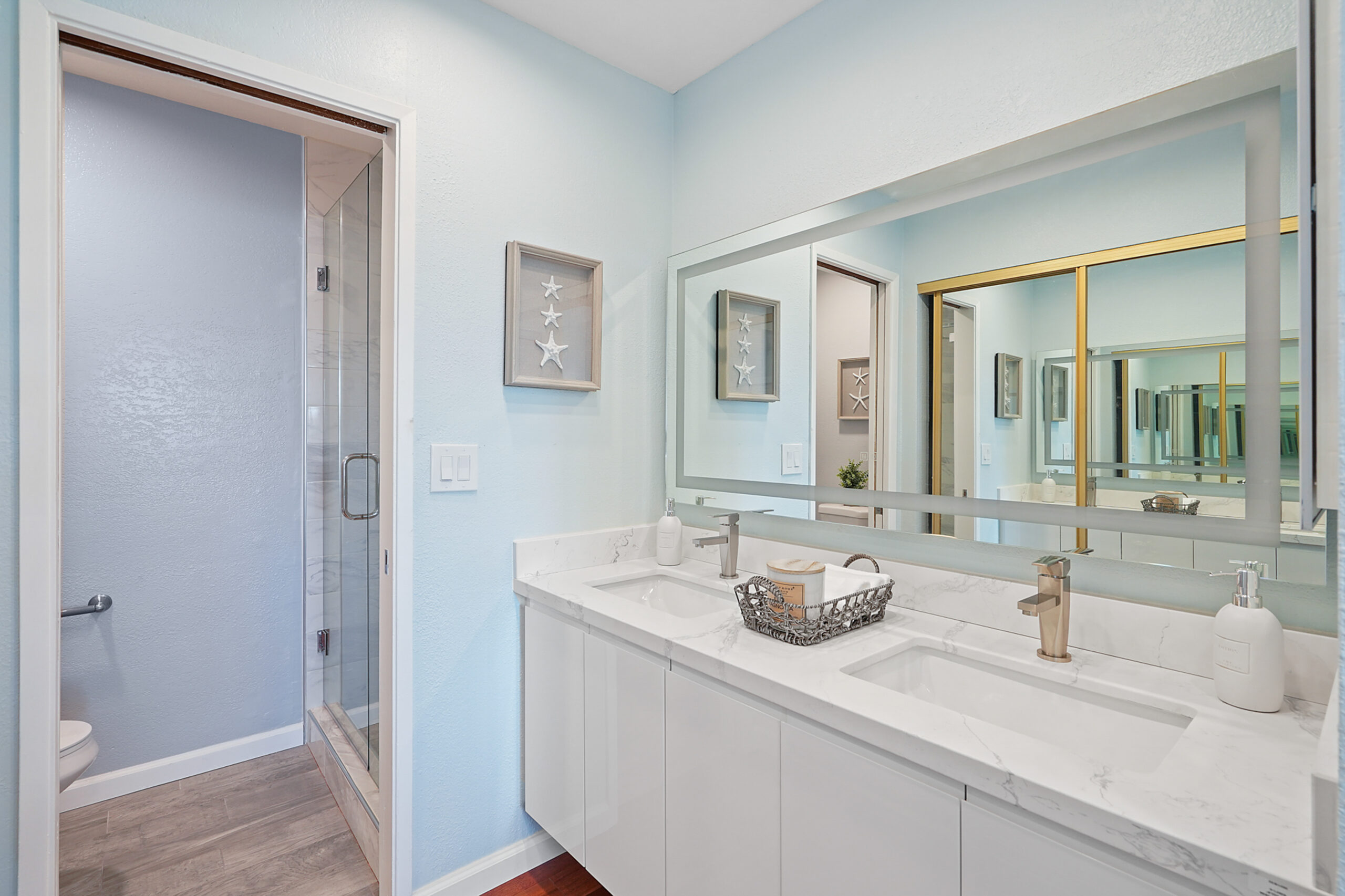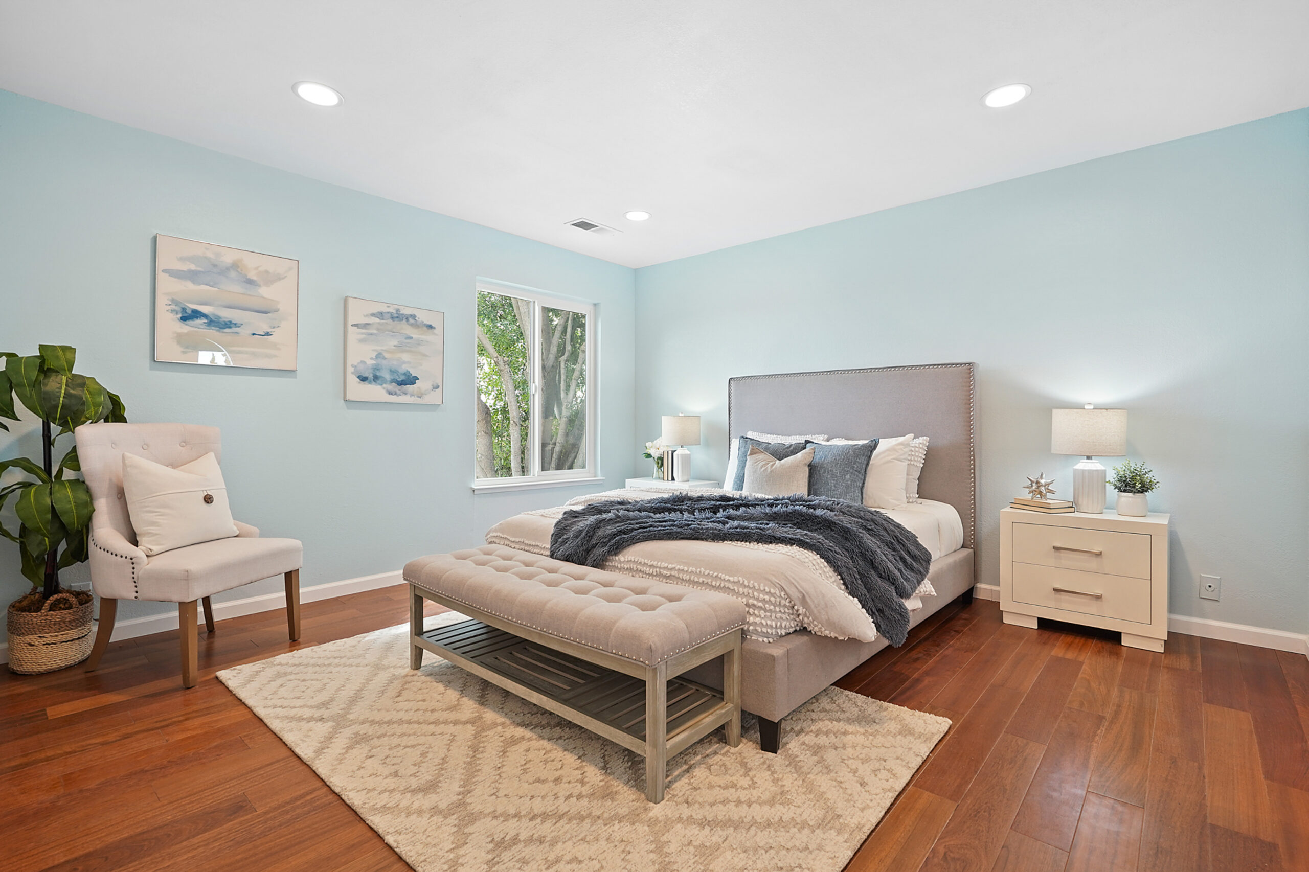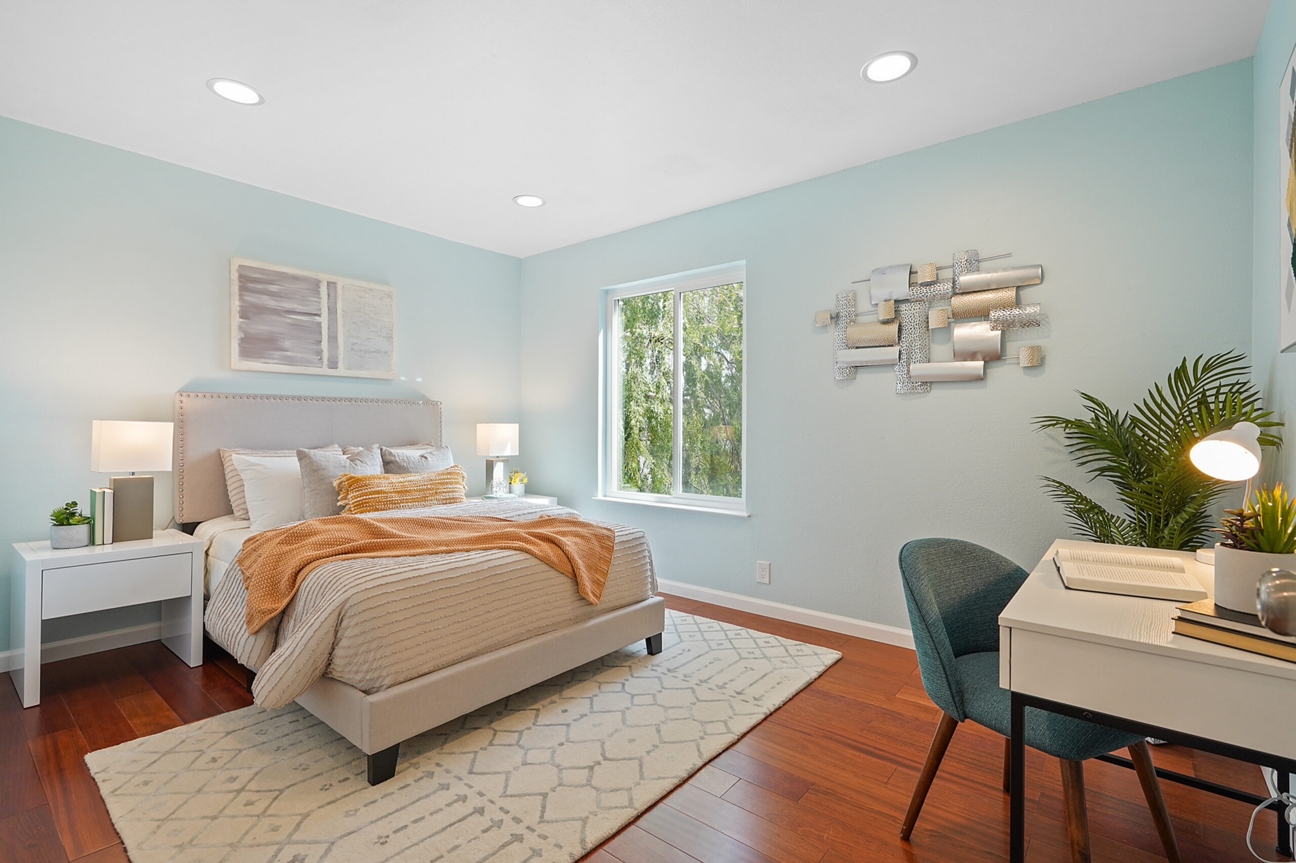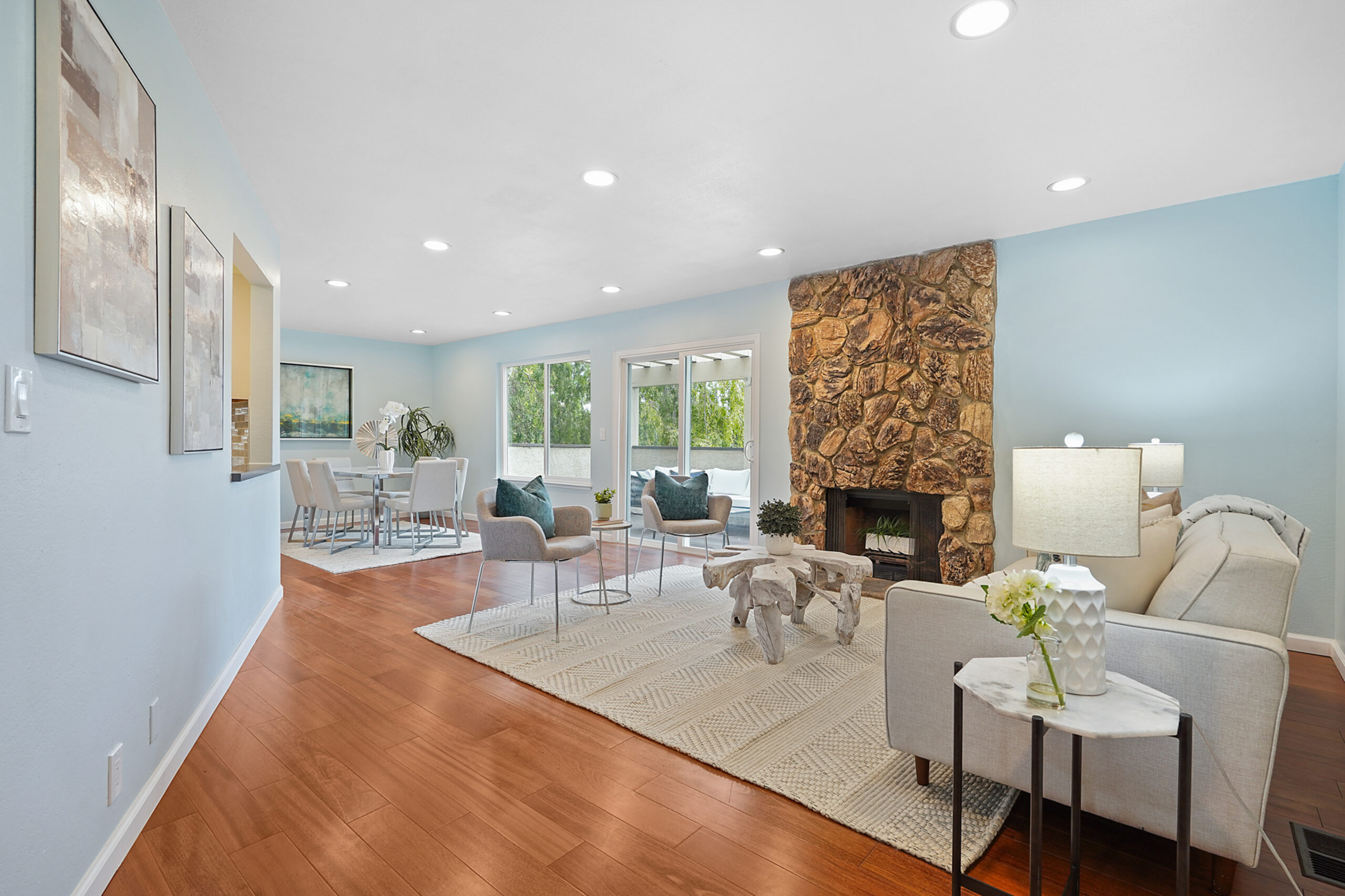 This exceptional end-unit townhome combines the most desirable location with beautifully appointed designer finishes throughout. Brand new remodel from top down – just completed in August 2022 with the benefit of permits. Gorgeous hardwood floors extend through this 3 bedroom, 2.5 bathroom townhome. Functional open concept floorplan with abundance of natural light, with easy access to a private balcony – perfect for indoor/outdoor entertainment. Enjoy the newly renovated designer kitchen with brand new cabinets, quartz countertops, and matching tile backsplash. The upstairs living quarters features a generous primary bedroom, with newly remodeled hallway and primary baths. Full 2-car attached garage provides limitless options for flex space. Outstanding location with award winning Cupertino schools, fantastic dining options, and superb commute options.