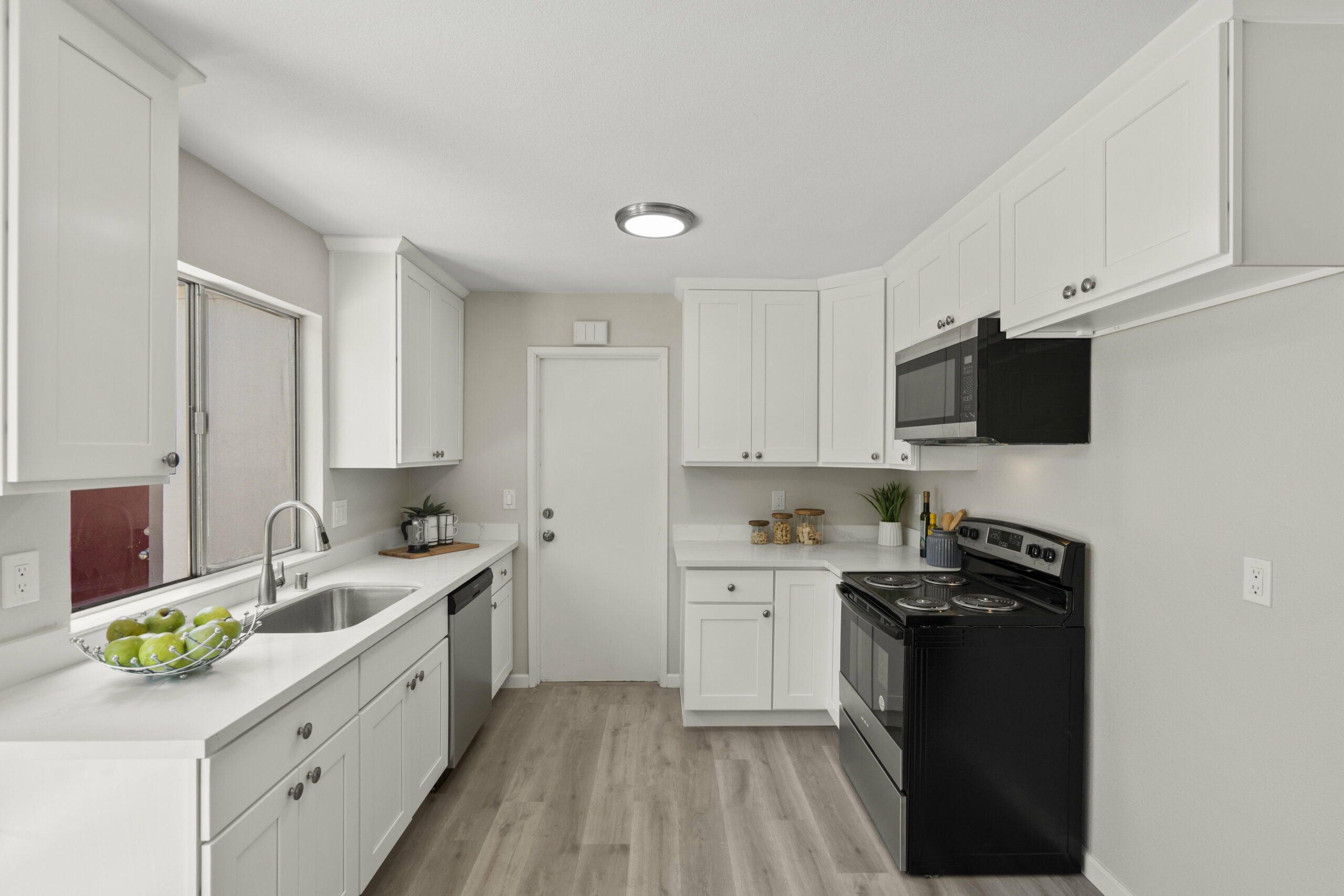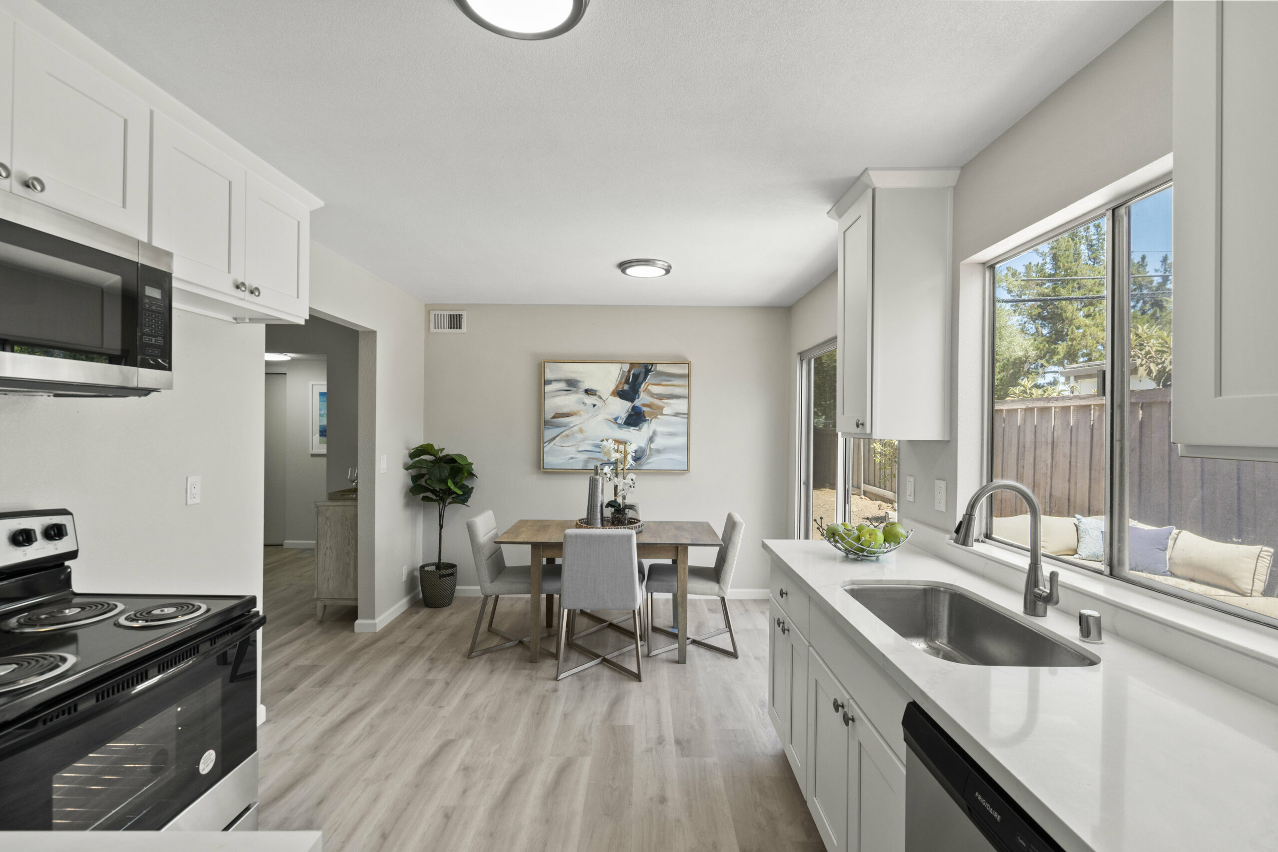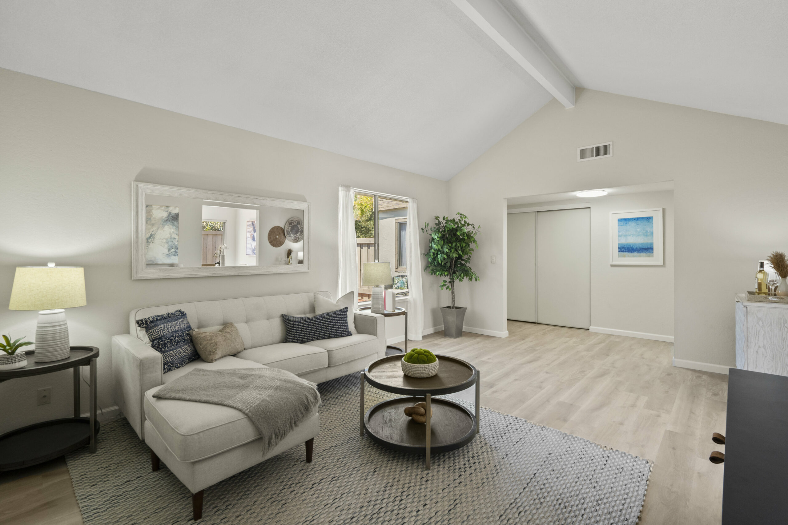 Welcome to your dream home! This beautifully remodeled single-level, 3-bedroom, 2-bath townhouse offers the privacy and comfort of a single-family residence with only a shared garage wall. Nestled in one of the best locations within the community, its just minutes away from top-rated Cupertino schools like Lincoln Elementary, Kennedy Middle, and Monta Vista High. The open-concept living and dining area is bathed in natural light, boasting vaulted ceilings, recessed lighting, and stunning LVP flooring. The gourmet kitchen is a chefs delight with quartz countertops, a decorative backsplash, and stainless steel appliances, all while providing picturesque views of your private, serene patioperfect for morning coffee or entertaining guests. The luxurious primary suite offers direct patio access through a glass slider. Additional features include central A/C, a spacious 2-car garage with abundant storage, and community amenities such as a gated pool, clubhouse, and green belt. Plus, the HOA covers water and roof maintenance. Don't miss this rare opportunity!