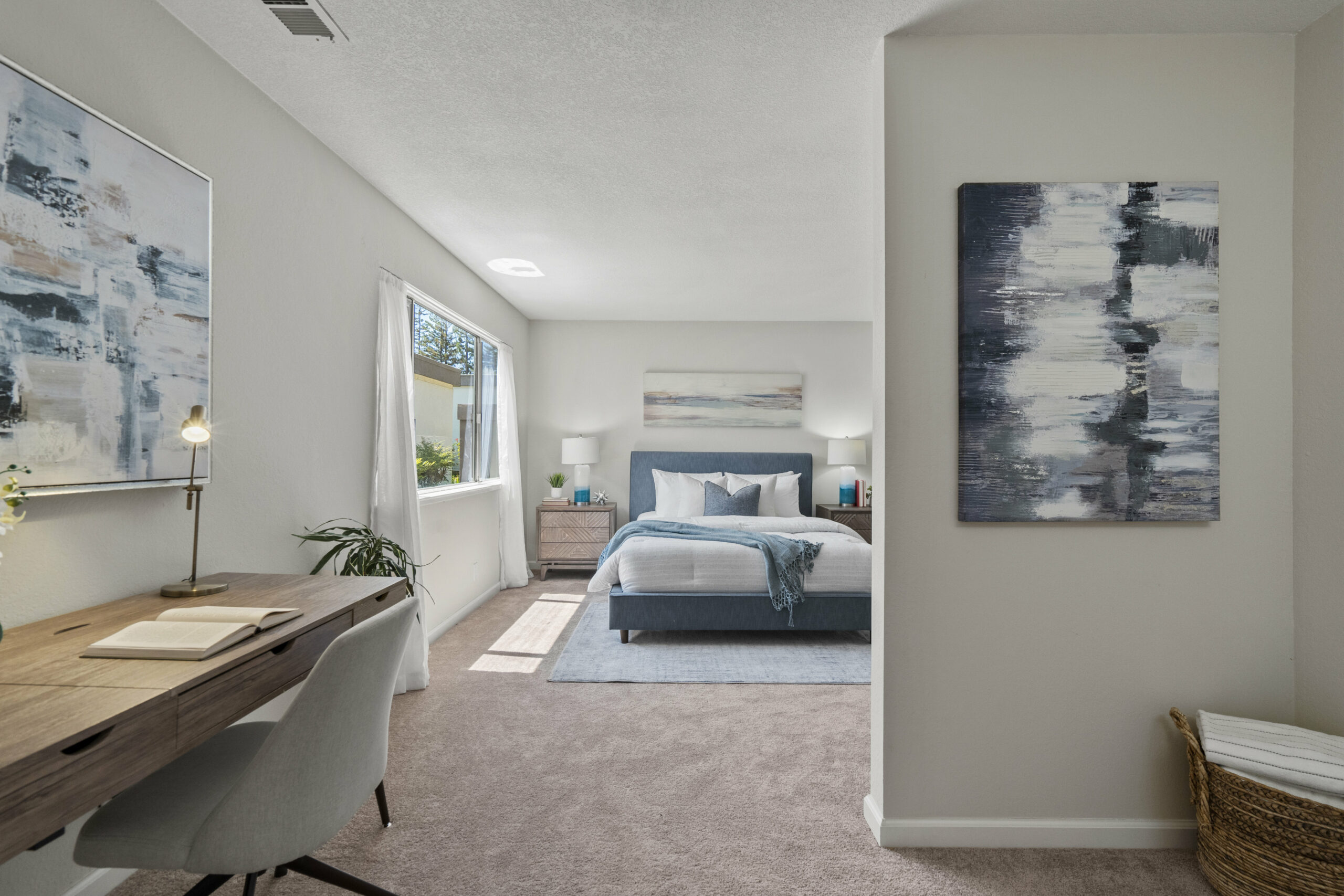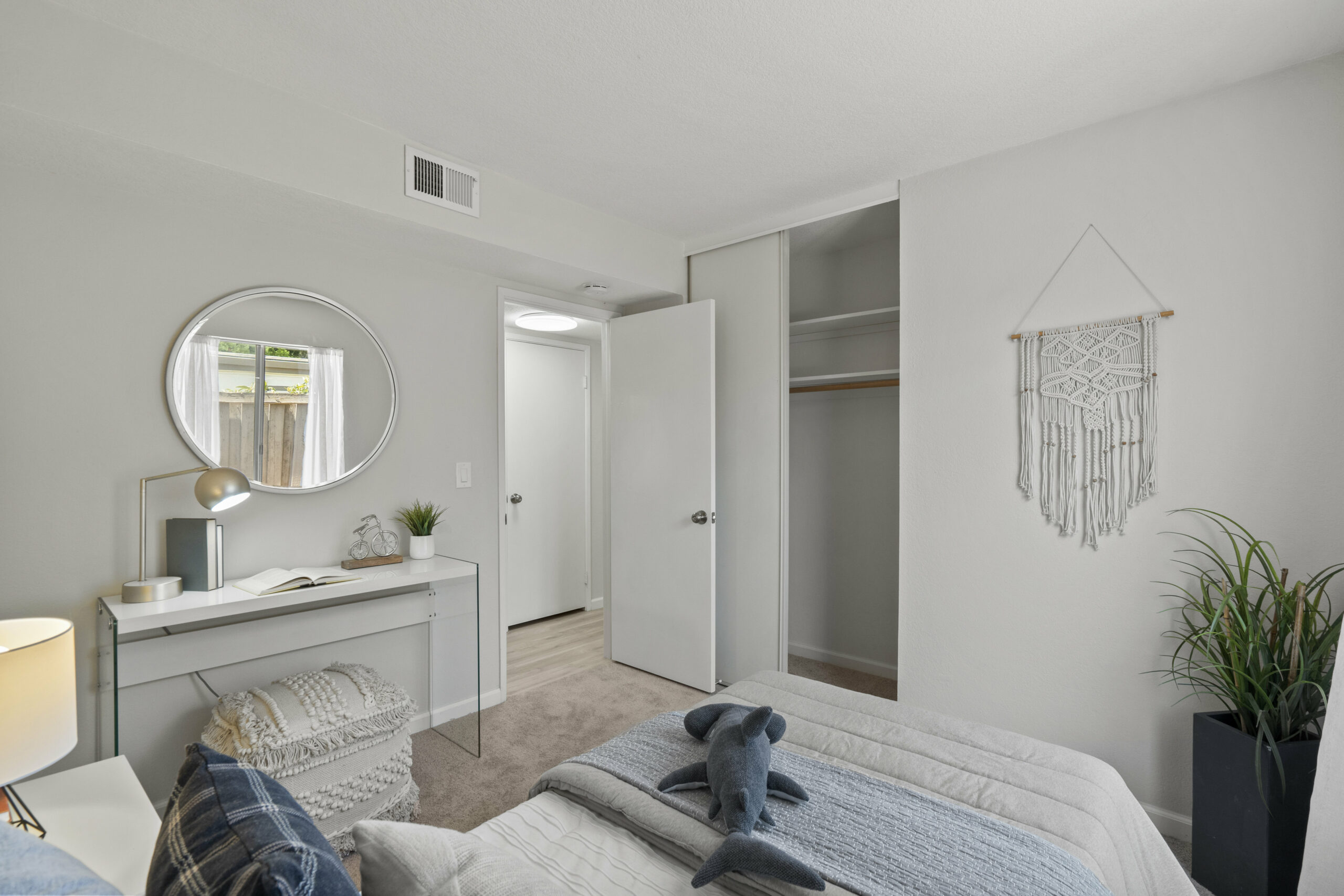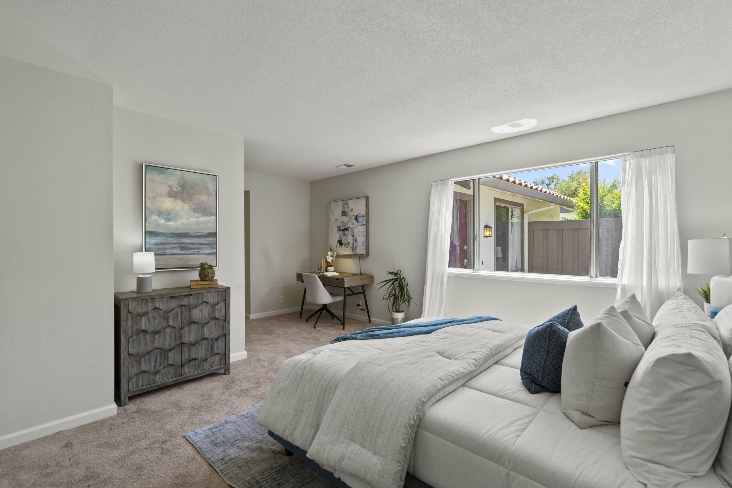 Welcome to your dream home! This beautifully remodeled single-level, 3-bedroom, 2-bath townhouse offers the privacy and comfort of a single-family residence with only a shared garage wall. Nestled in one of the best locations within the community, its just minutes away from top-rated Cupertino schools like Lincoln Elementary, Kennedy Middle, and Monta Vista High. The open-concept living and dining area is bathed in natural light, boasting vaulted ceilings, recessed lighting, and stunning LVP flooring. The gourmet kitchen is a chefs delight with quartz countertops, a decorative backsplash, and stainless steel appliances, all while providing picturesque views of your private, serene patioperfect for morning coffee or entertaining guests. The luxurious primary suite offers direct patio access through a glass slider. Additional features include central A/C, a spacious 2-car garage with abundant storage, and community amenities such as a gated pool, clubhouse, and green belt. Plus, the HOA covers water and roof maintenance. Don't miss this rare opportunity!
