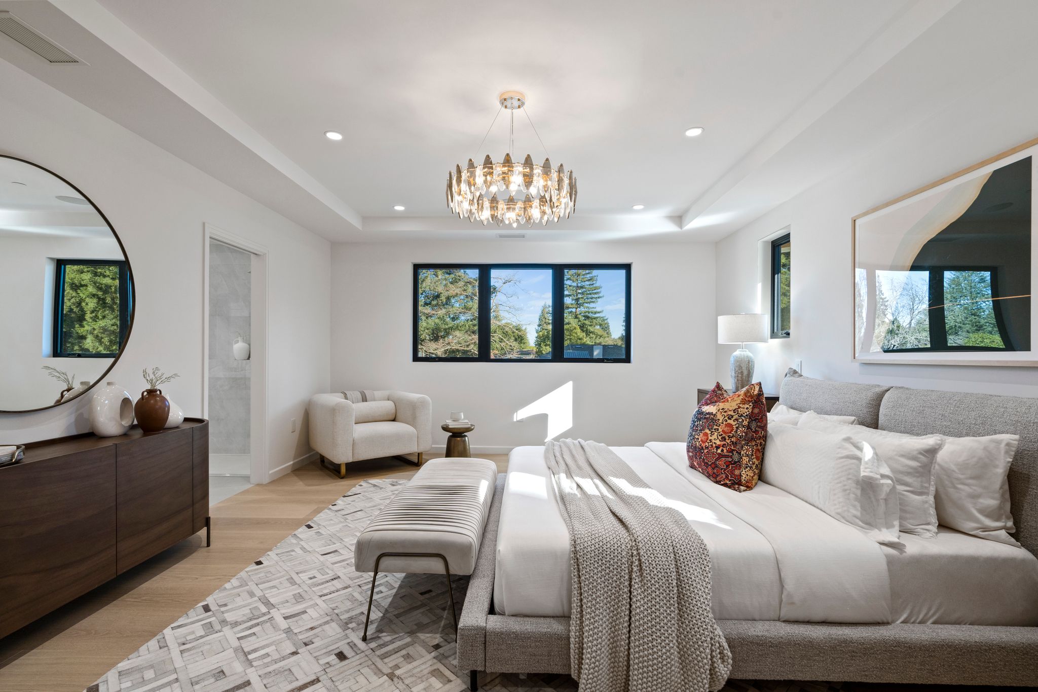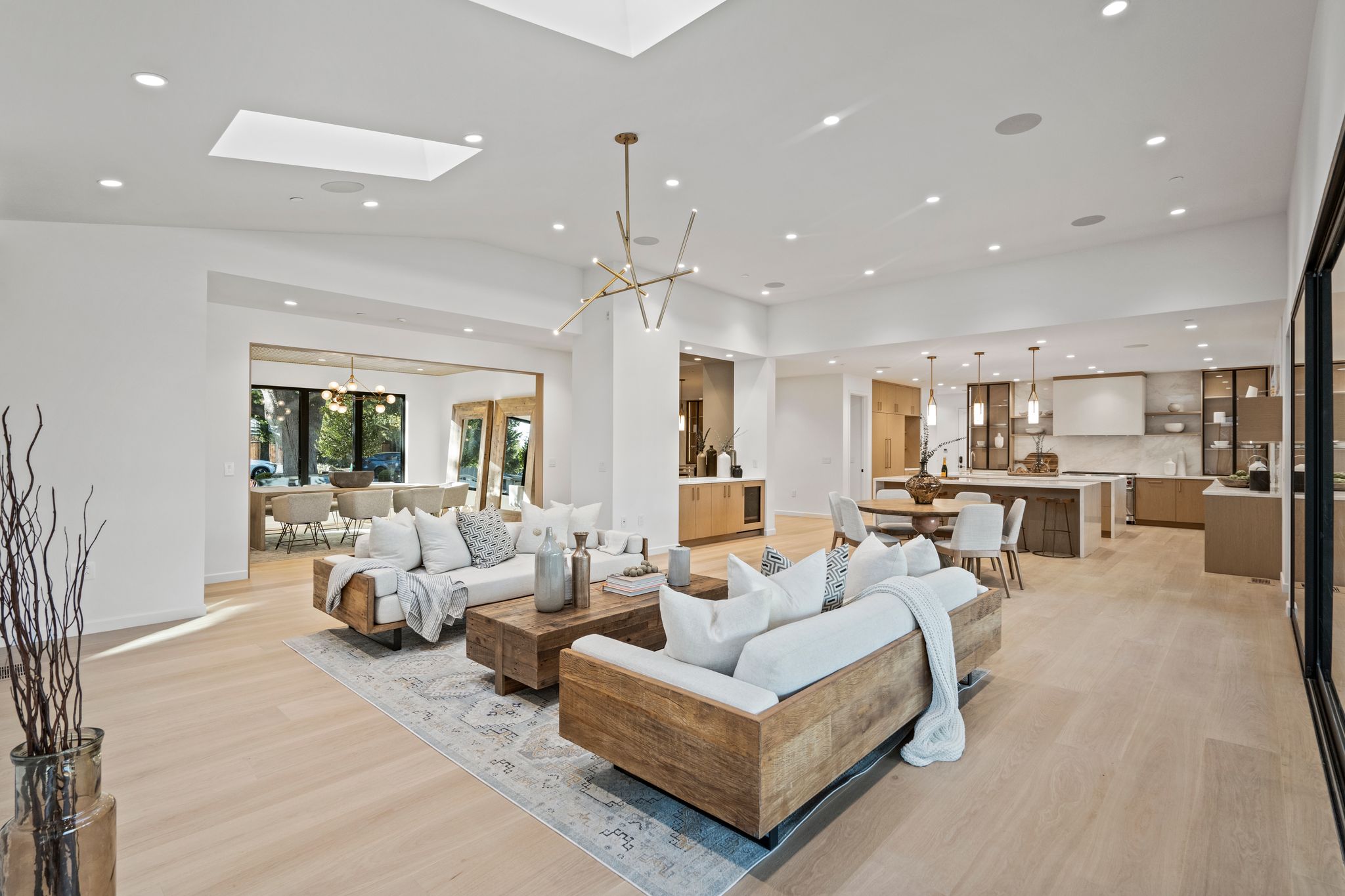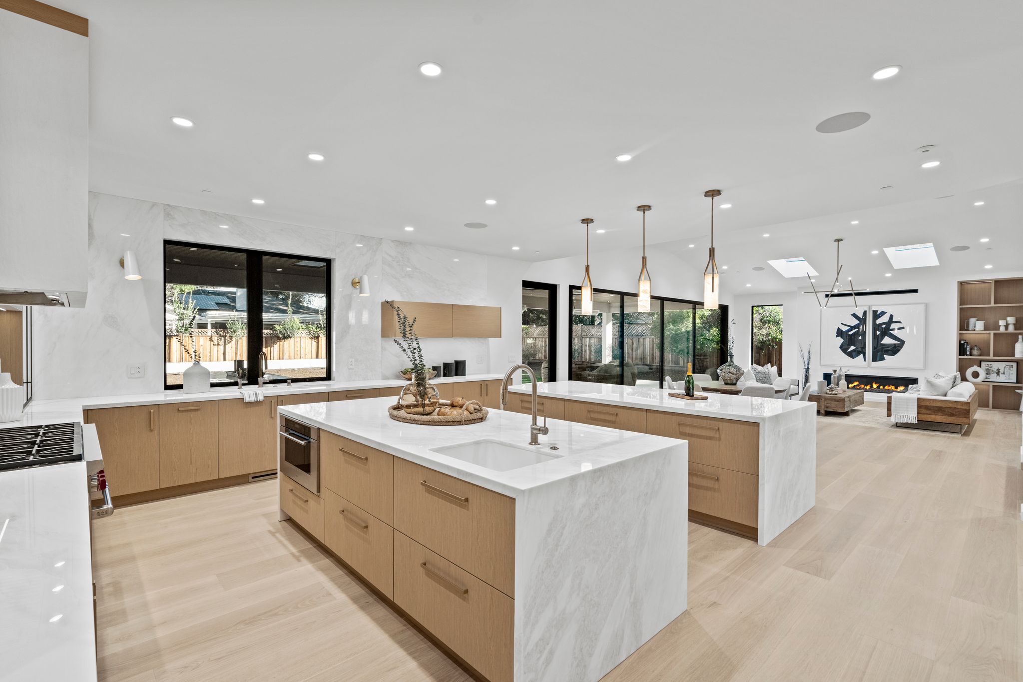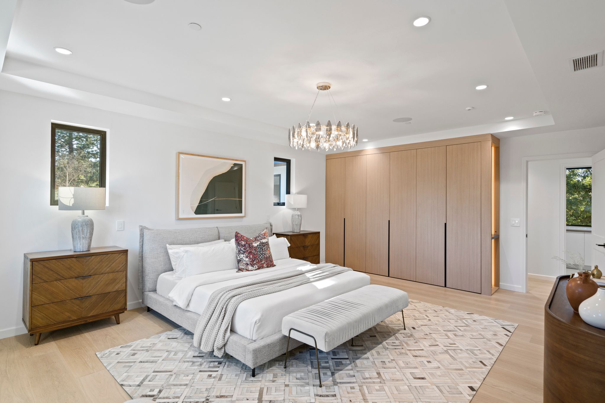Nestled within one of North Los Altos' most distinguished cul-de-sacs, this exceptional residence occupies a sprawling 7,329 sf of habitable space across a 19,728 square foot lot. Embodying timeless contemporary California architecture, the home exudes a perfect blend of minimalism and warmth, characterized by clean lines and natural elements that converge to cultivate a tranquil atmosphere. Multi-slide glass doors grace the great room, bathing the interior in natural light and seamlessly integrating indoor and outdoor spaces. A gourmet chef's kitchen, complete with top-of-the-line appliances and dual islands, transitions effortlessly from a casual breakfast spot to a sophisticated venue for lavish gatherings. Throughout the three-level estate, natural elements are subtly woven into the design, complementing the four en suite bedrooms upstairs and additional guest suites. The lower level features a magnificent lounge, gym, and versatile multi-purpose room adorned with a full wet bar and accented by a state-of-the-art glass wine room. Enjoy a detached 850 square foot ADU, perfect for hosting guests or accommodating extended family. This contemporary new construction custom residence promises to deliver unparalleled luxury and sophistication.