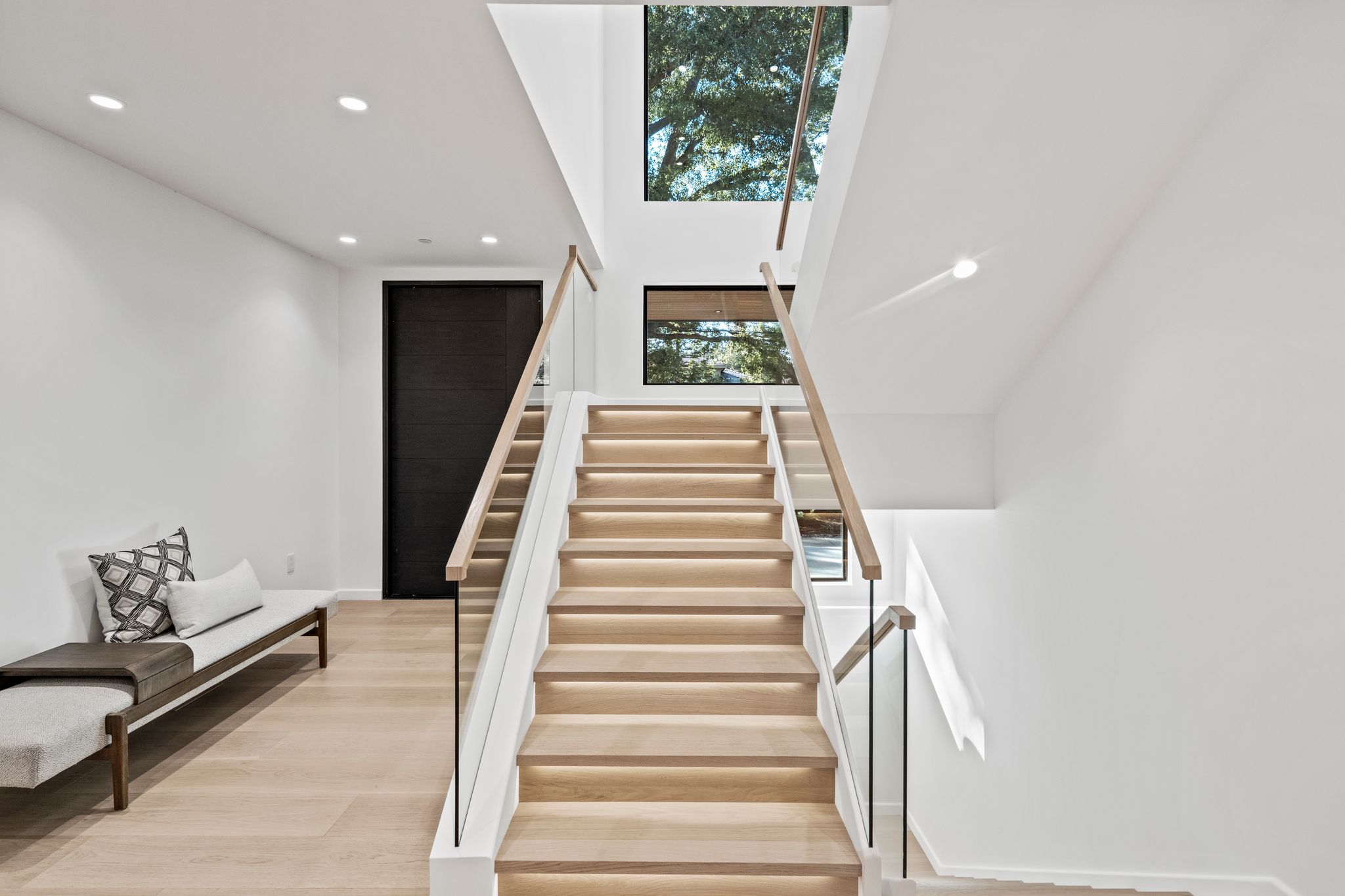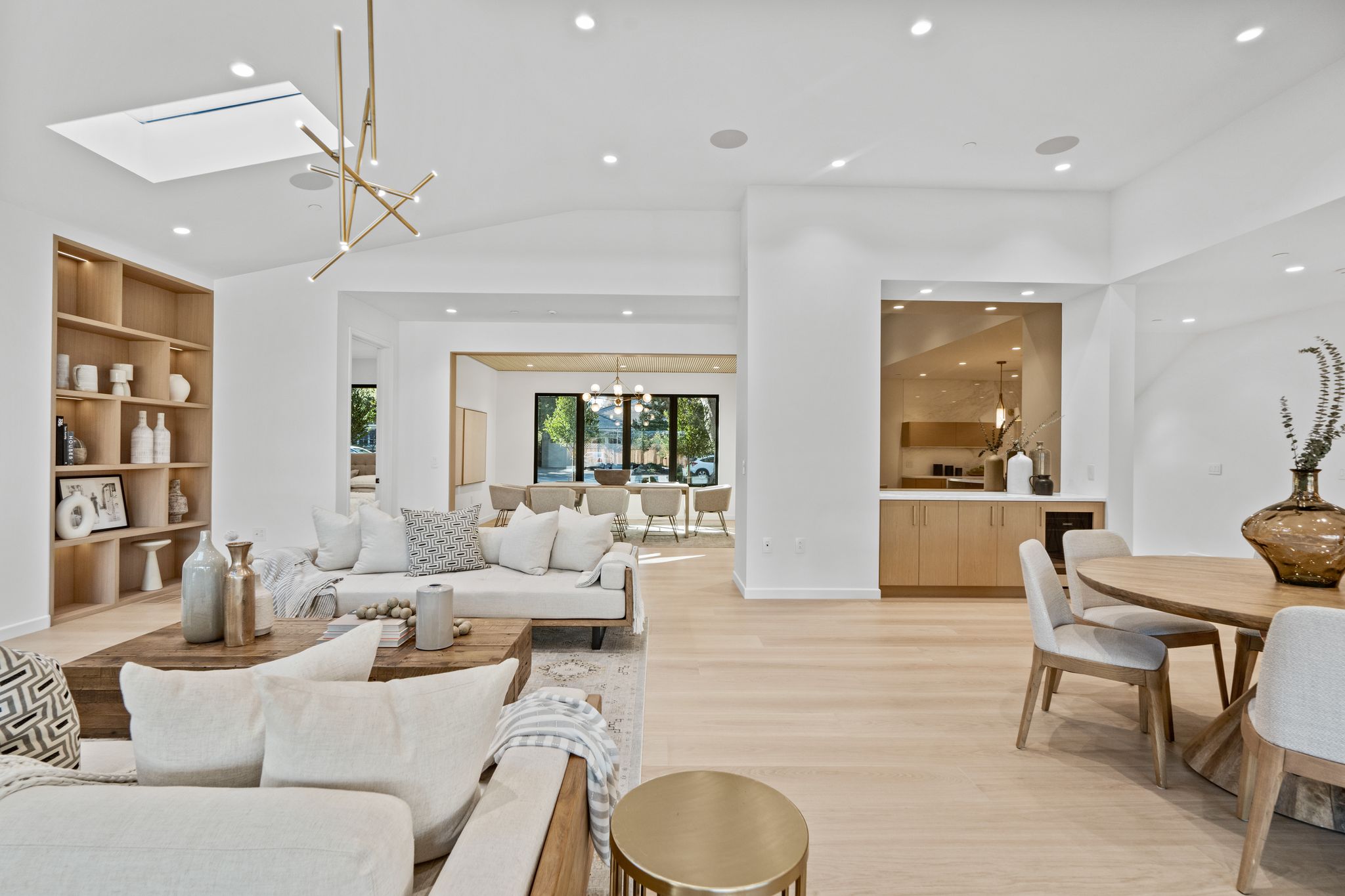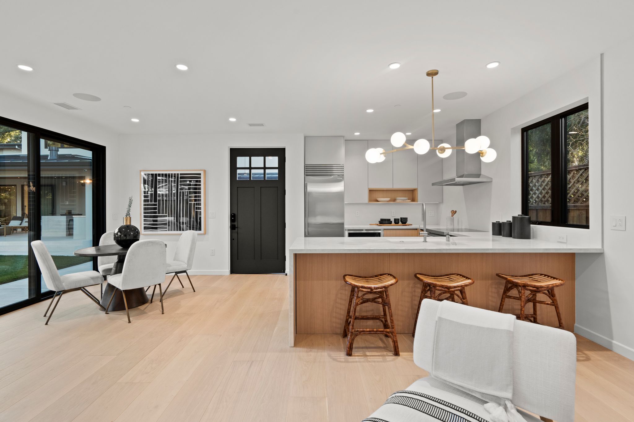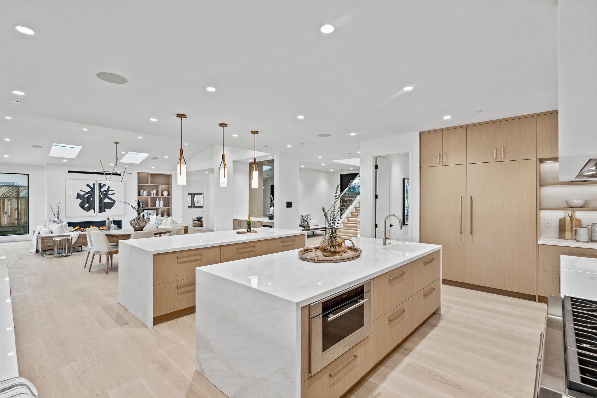Nestled within one of North Los Altos' most distinguished cul-de-sacs, this exceptional residence occupies a sprawling 7,329 sf of habitable space across a 19,728 square foot lot. Embodying timeless contemporary California architecture, the home exudes a perfect blend of minimalism and warmth, characterized by clean lines and natural elements that converge to cultivate a tranquil atmosphere. Multi-slide glass doors grace the great room, bathing the interior in natural light and seamlessly integrating indoor and outdoor spaces. A gourmet chef's kitchen, complete with top-of-the-line appliances and dual islands, transitions effortlessly from a casual breakfast spot to a sophisticated venue for lavish gatherings. Throughout the three-level estate, natural elements are subtly woven into the design, complementing the four en suite bedrooms upstairs and additional guest suites. The lower level features a magnificent lounge, gym, and versatile multi-purpose room adorned with a full wet bar and accented by a state-of-the-art glass wine room. Enjoy a detached 850 square foot ADU, perfect for hosting guests or accommodating extended family. This contemporary new construction custom residence promises to deliver unparalleled luxury and sophistication.