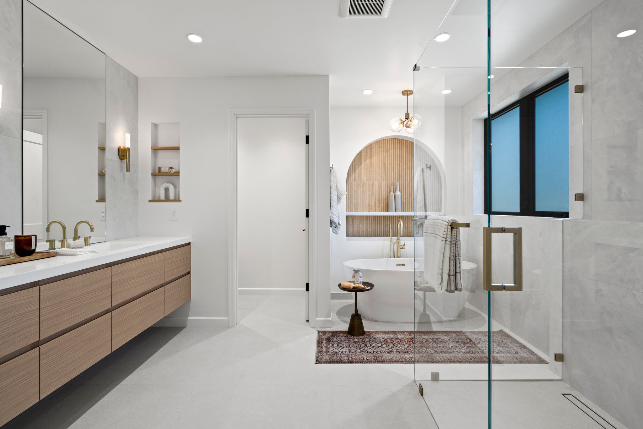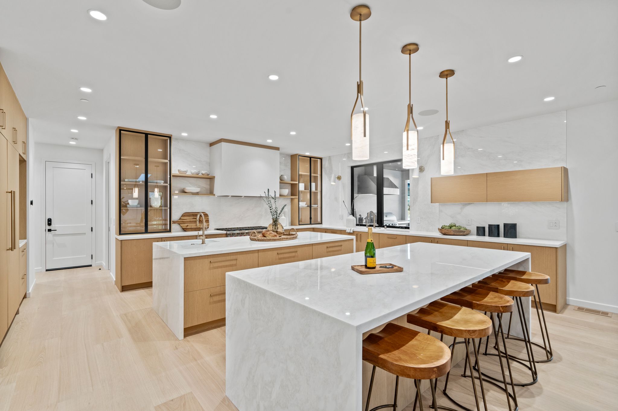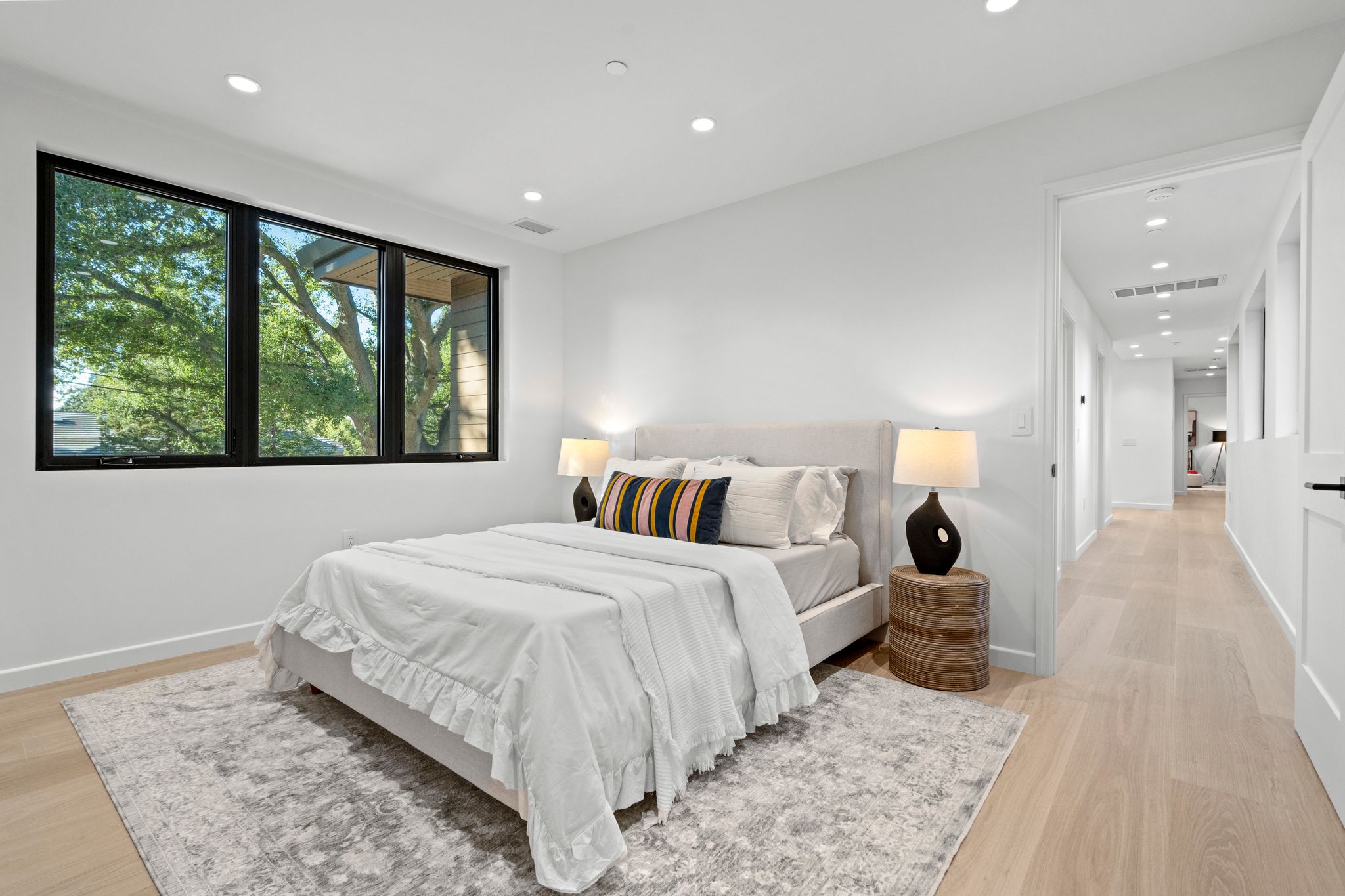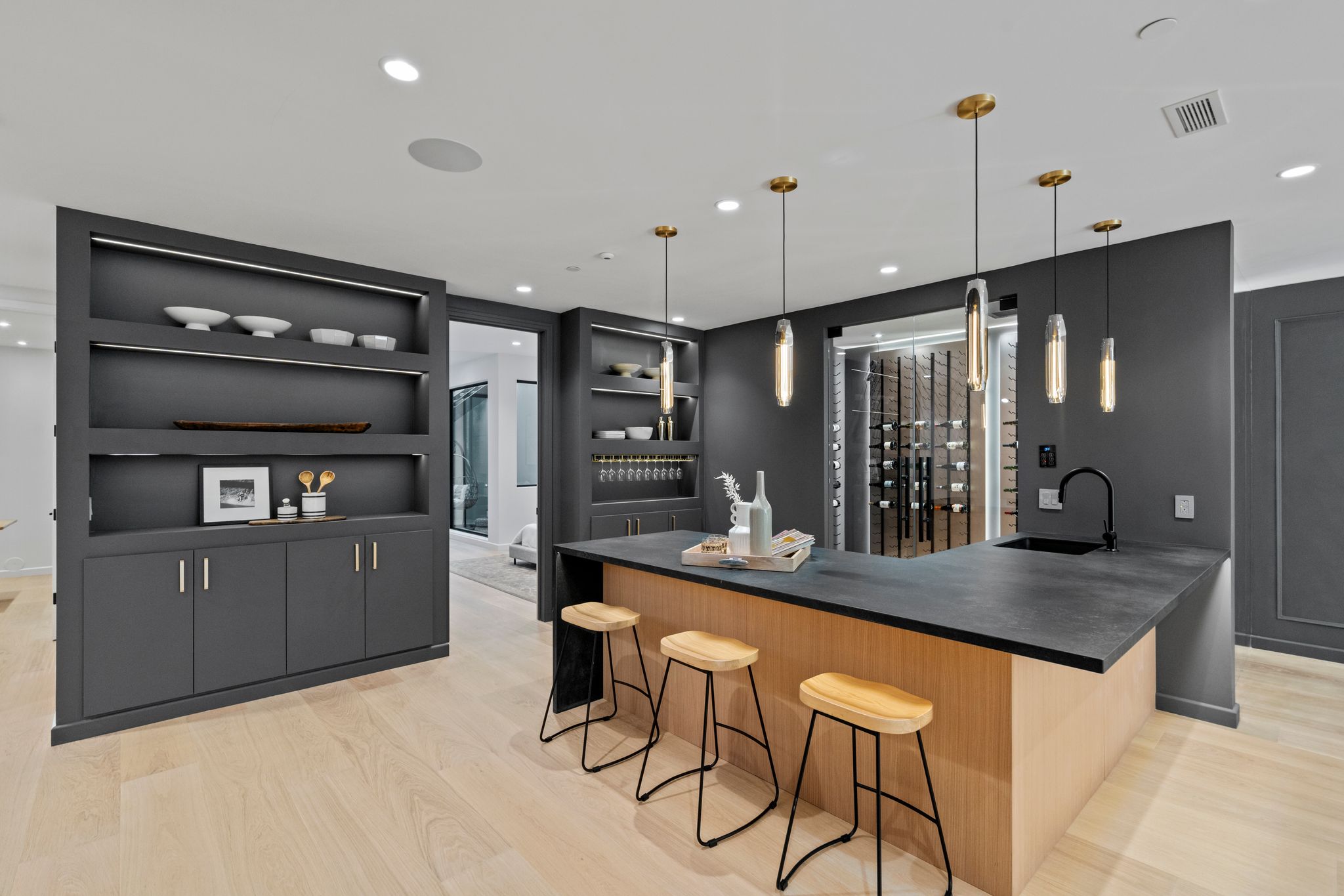 Nestled within one of North Los Altos' most distinguished cul-de-sacs, this exceptional residence occupies a sprawling 7,329 sf of habitable space across a 19,728 square foot lot. Embodying timeless contemporary California architecture, the home exudes a perfect blend of minimalism and warmth, characterized by clean lines and natural elements that converge to cultivate a tranquil atmosphere. Multi-slide glass doors grace the great room, bathing the interior in natural light and seamlessly integrating indoor and outdoor spaces. A gourmet chef's kitchen, complete with top-of-the-line appliances and dual islands, transitions effortlessly from a casual breakfast spot to a sophisticated venue for lavish gatherings. Throughout the three-level estate, natural elements are subtly woven into the design, complementing the four en suite bedrooms upstairs and additional guest suites. The lower level features a magnificent lounge, gym, and versatile multi-purpose room adorned with a full wet bar and accented by a state-of-the-art glass wine room. Enjoy a detached 850 square foot ADU, perfect for hosting guests or accommodating extended family. This contemporary new construction custom residence promises to deliver unparalleled luxury and sophistication.